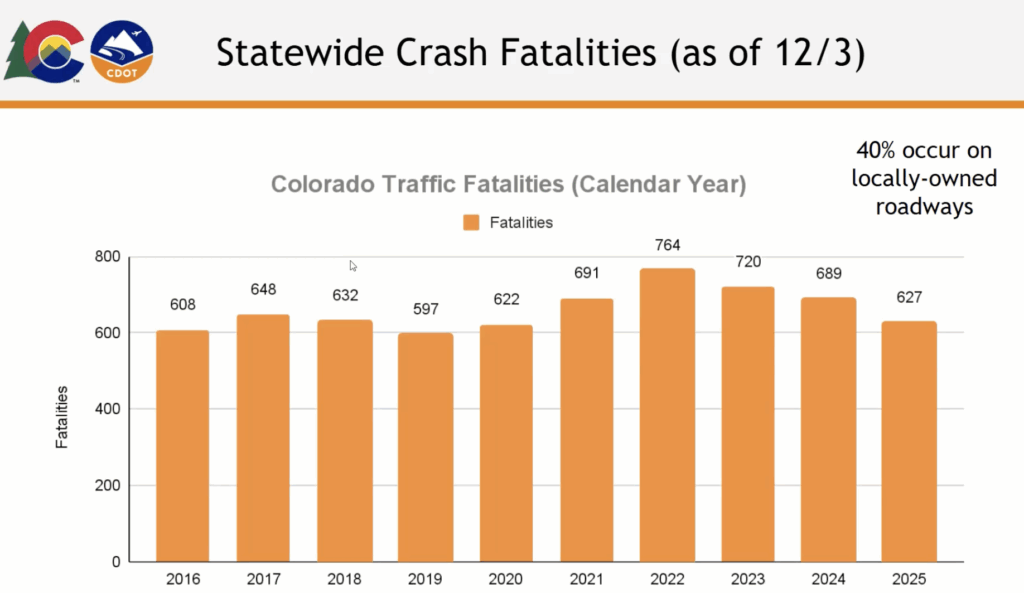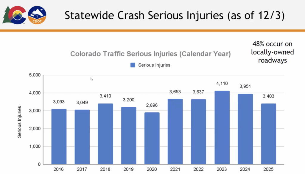 This past week I attended a Denver Regional Council of Governments meeting. CDOT presented a year-end safety update. Excess deaths and injuries continue to be the norm.